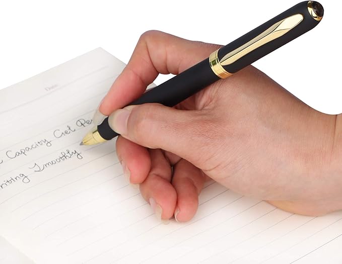 - ✍ELEGANT&COMFORTABLE DESIGN: The whole neutral pen with soft touch rubber coated,which brings you a comfortable writing experience.The durable metal clip is convenient for you to carry in your pocket.The shiny gold parts making the pen look more luxurious.