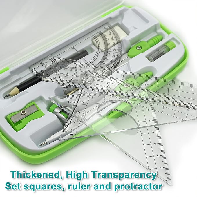 - Maths Compasses Geometry Set for Students with Protractor, Set Squares in Carry Case