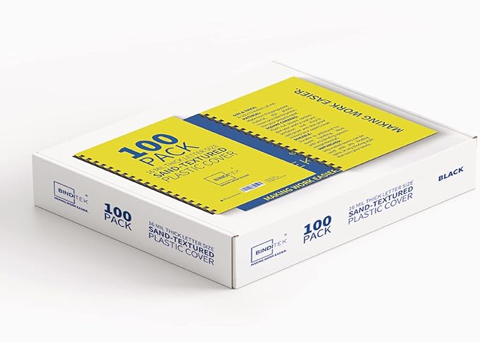 Binditek 100 Pack 16 Mil Sand-Textured Polycover - Plastic Binding Cover for Letter Size - Business Reports and Proposals - Lightly Sanded Finish - Square Corners, Un-Punched, Black