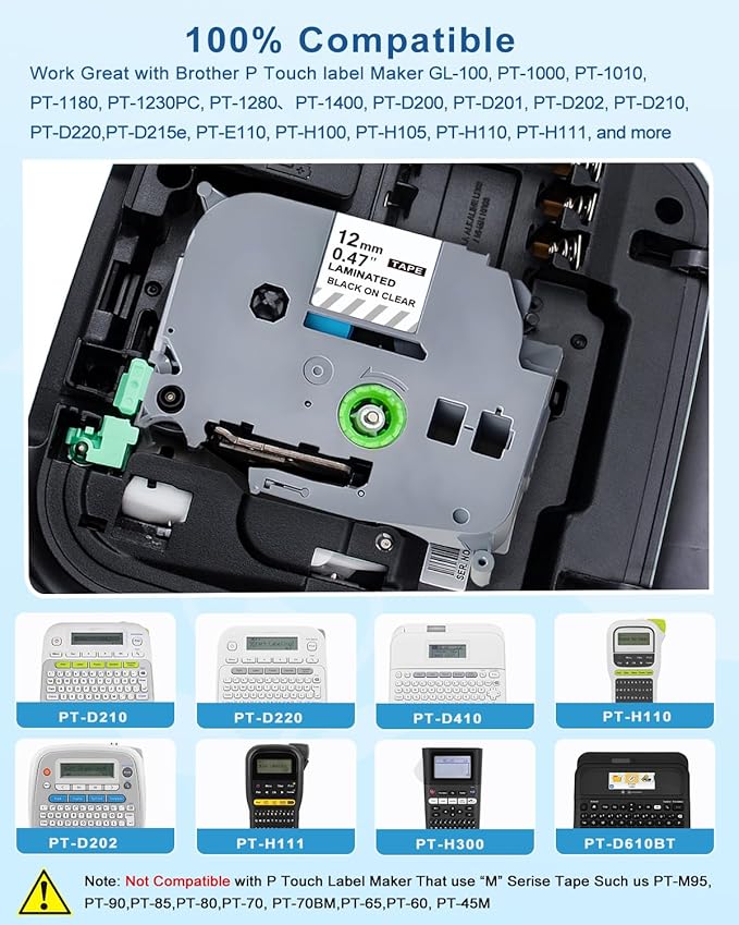 - Label Maker Tape Compatible with brother 12mm .47 laminated clear tz tape water resistant, abrasion resistant, temperature resistant, fade resistant; Replace for Brother clear label tape can be use for outdoors, and they work equally well indoors