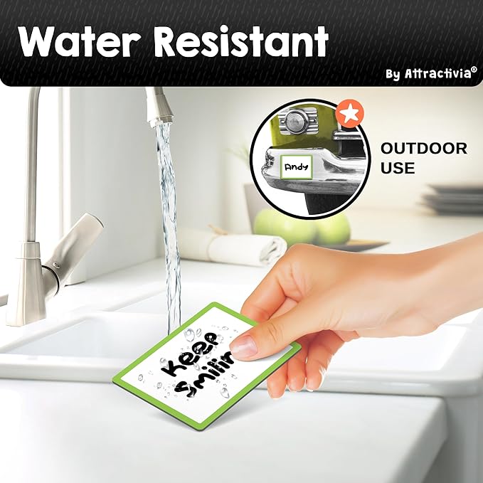 - Rewritable 100,000+ Times: Unlike flimsy labels that degrade over time, our white board magnetic labels are engineered to be erased and rewritten over 100,000 times without losing quality. The advanced coating prevents ink buildup, so every wipe restores a brand new surface, saving you money while reducing waste!