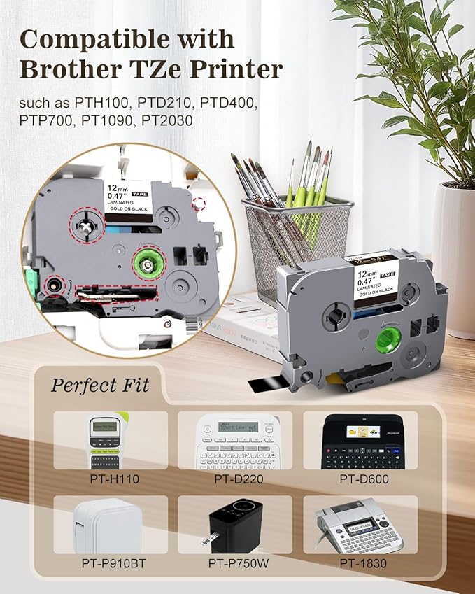 - Easy to Peel: Compatible with Brother Tz tape 12mm gold has split-back design, is easy to peel and convenient to use the 12mm Tz tape black.