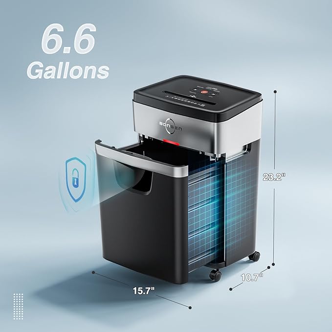 BONSEN Paper Shredder, 20-Sheet 60 Mins Nonstop Heavy Duty Paper Shredder for Office, 60dB Ultra Quiet Cross-Cut Shredder with 6.6 Gals Basket, Anti-Jam CD and Credit Shredder for Home Office (S3104)