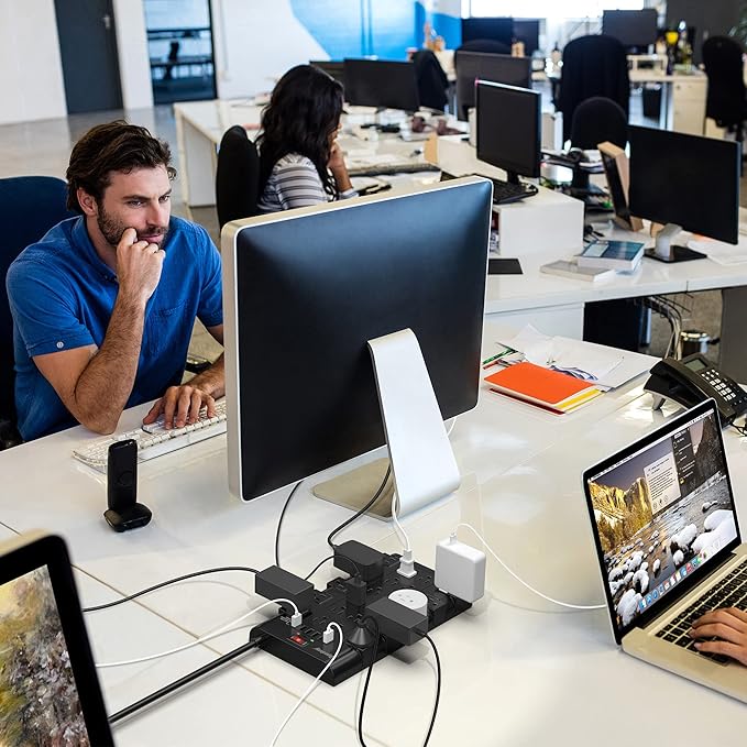 - 【Widely Spaced Outlets】 The unique design of this usb power strip allows there to be no issues with some bulkier plugs blocking other outlets, as the outlets are spaced out enough. There are four rows of outlets that give you multiple ways of plugging in a variety of cords. The power strip helps organize your cords, shelve your numerous adapters, have much less clutter and save space.