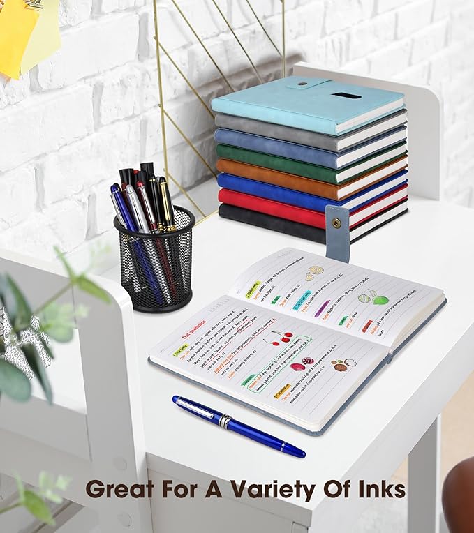 - 【PREMIUM THICK PAPER】:5.9 X 8.4 inch journal notebook with 200 pages 100 gsm lined paper, thicker 30% than normal, this blue notebook is designed to avoid feathering and the paper is ink-proof, suit for most pens, but the wettest pen inks. Archival-quality pages made from acid-free paper-resists damage from light and air, the cream paper is easy on eyes.Let your creation more freedom on the wide ruled journal to write in.