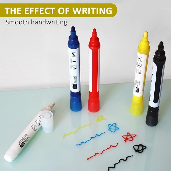 - 【NON-TOXIC & SAFE】– Display your writing with eye catching colors. These glass dry-erase markers produce vivid color that helps your message be more easily seen and read by others. Excellent replacement of old dusty chalk.