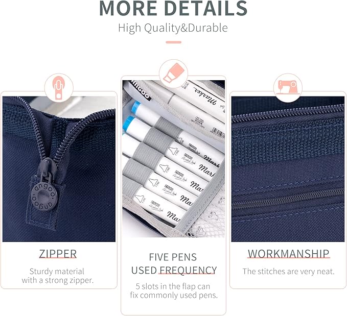 HVOMO Pencil Case Large Capacity Pencil Pouch Handheld Pen Bag Cosmetic Gift for Office School Teen Girl Boy Men Women Adult (Navy)