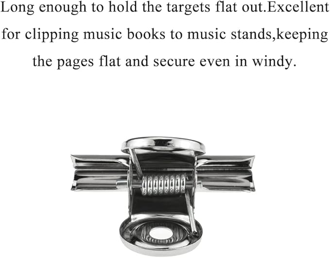 - Sit flat.The clips are long enough to hold the targets flat out.Excellent for clipping music books to music stands,keeping the pages flat and secure even in windy.Works for holding a book open,also works great for installing arrow feathers on the arrow,hold books open by placing the clip at the top across the spine or along the sides of the book.Help the gluing,by grip edges firmly until they dry.