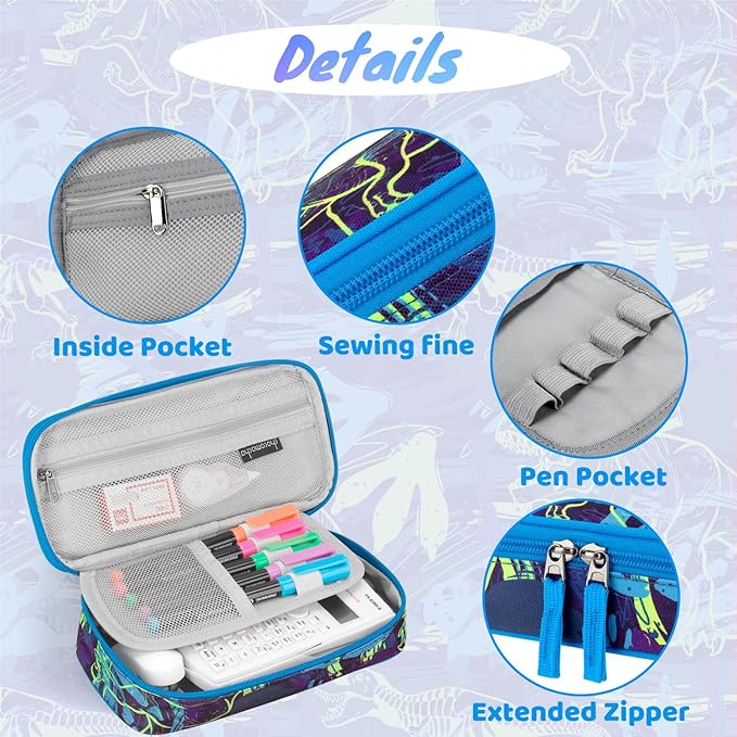 - Dinosaur Pencil Case Size: 9.0 x 2.0 x 4.5 inch
