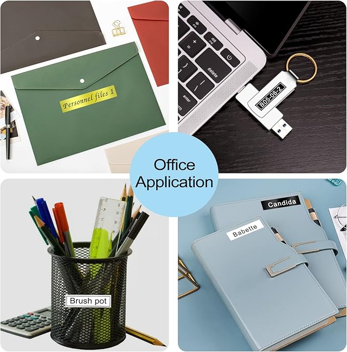 - For Indoor and Outdoor: Such as office supplies, lab appliances, wardrobe, kitchenware, etc. Compatible with Brother 12mm label tape gold/black/white has split-back design, is easy to peel and use. Print clearly and no sticky residue when Ptouch tape 12mm is removed.