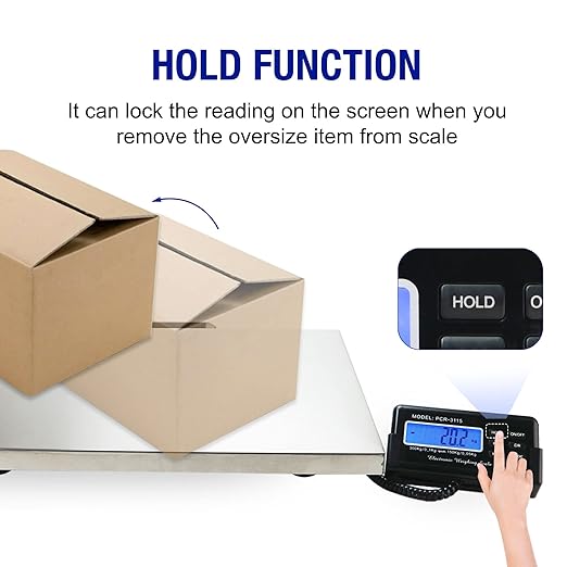 - HOLD & TARE FUNCTION: Hold button - lock the weight on the screen without packages. Tare button - zero out any weight less than 360lb. These are useful functions help you packaging, calculating, shipping.