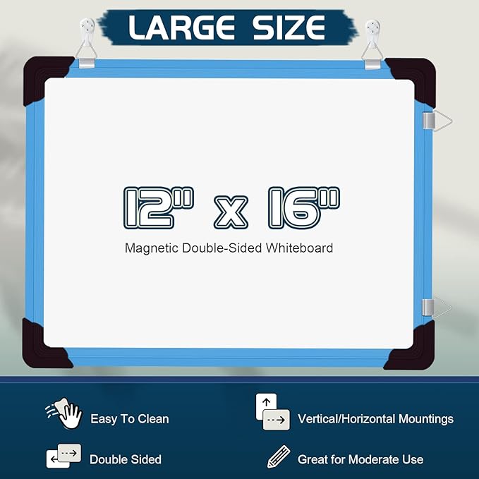 - Large Size & Value Package: The enlarged 16 X 12 inches erase calendar whiteboard has perfect size, can be used as a monthly planner, weekly planner, schedule, message or memos board! Dry erase calendar set comes with 10 pcs magnetic markers (include 8 color), 4 pcs magnets, 1 pcs dry eraser. Extra 4 pcs sticky hooks and 4 pcs hardwall hooks help hang on the wall, no need to buy a bunch of accessories. TIP: Please peel off protective film on both sides before using.