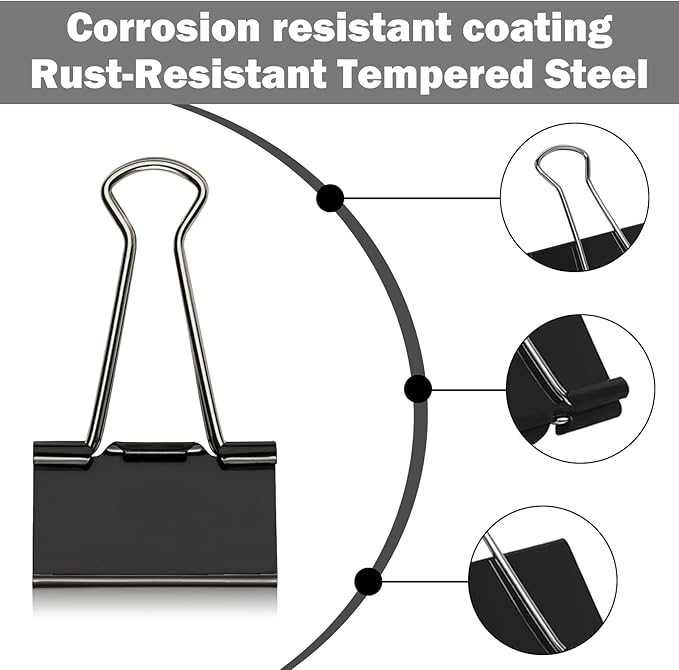 - Jumbo binder clips are made from tempered steel, ensuring long-term durability and maintaining flexibility for unlimited reuse. Assembled with steel arms, the clips provide an extra strong grip for your documents