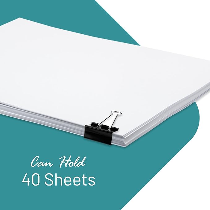 - Includes 24 small binder clips. ¾” –holds 40 sheets of paper.