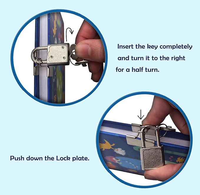 - 【Sturdy Binding Notebook for Kids】- Sturdy hardcover and sewn binding for the blue lockable diary, kids can open this lock journal flat for both pages, comfortable to writing, drawing and coloring