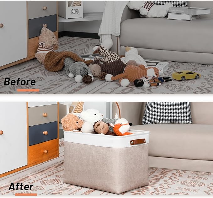 - 👏【Home Organizing Sollutions】--- These organizing storage bins with fun, trendy and adorable styles and colors can meet many storage needs. Linen, Home organization Baskets bring you organizing convenience and a sweet home. The fabric baskets with neutral colors can match a lot of home styles - keeping your home nice and tidy.