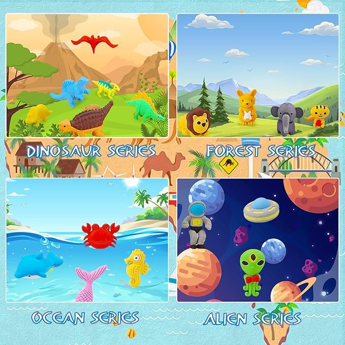 - FUN DESK PETS:Perfect for classroom rewards, these animal erasers bulk packs solve the hunt for affordable, fun erasers for kids bulk. The cute erasers for kids keep young minds engaged during lessons or travel. Use them as Valentine’s erasers for kids, back-to-school party favors, or Easter egg fillers – their vibrant colors and premium quality make theEaster giftfor kidsstand out. Plus, they’re non-toxic and erase cleanly