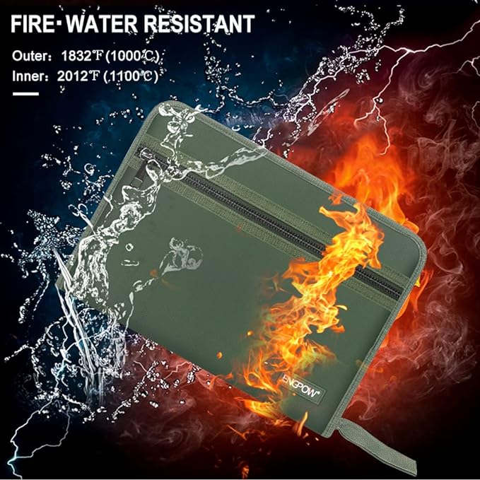 - Original Intention:Accidents happen when we least expect, and there’s nothing more devastating than a fire that takes away valuable paperwork, personal information, pictures or achievements.That’s why we developed the fireproof document bag- Protect your financials, personal information,document notebook, that won’t let you down when emergency strikes.