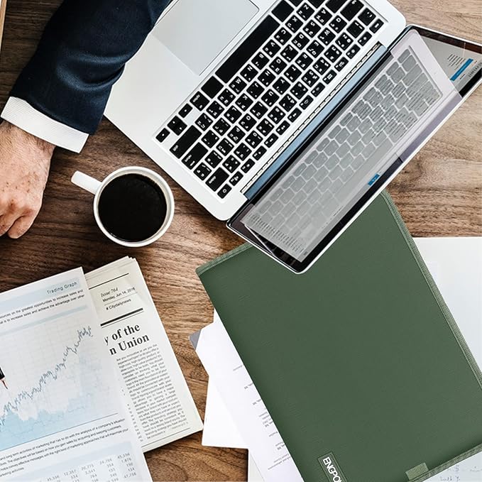 ENGPOW 13 Pocket Expanding File Folder,Fireproof Accordion File Folder Document Organizer with Zipper Closure,Document Folder Safe with Colorful Tabs,A4 Letter Size for Travel,Home,Office,Green