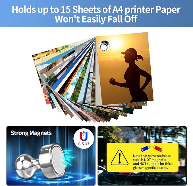 - 🌻【Strong Fridge Magnet】Do not be fooled by these magnets for whiteboard, They can hold up to 15 sheets of A4 printer paper at once with just a tiny magnet. Even possible to use them in the kitchen to hold cooking tools that weigh no more than 6.5 OZ and the cooking tools won't easily fall off.