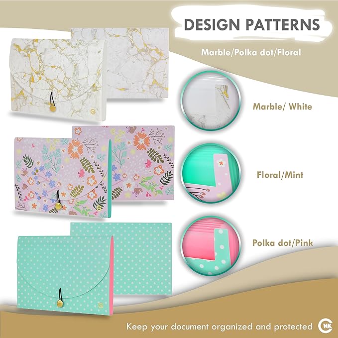 - [Sleek and Stylish Design] Our Sleek and Stylish CNK Accordian File Organizer come in 3-Packs of 13 Pocket expandable file folder with unique hand picked colors that is elegant and stylish.