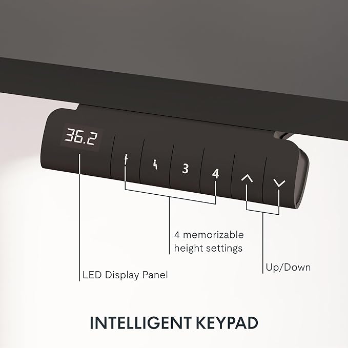 - 【PROGRAMMABLE CONTROLLER】 Easily set your preferred desk heights using the convenient control panel. Program up to four different heights into the memory buttons, allowing you to switch between sitting and standing positions effortlessly.