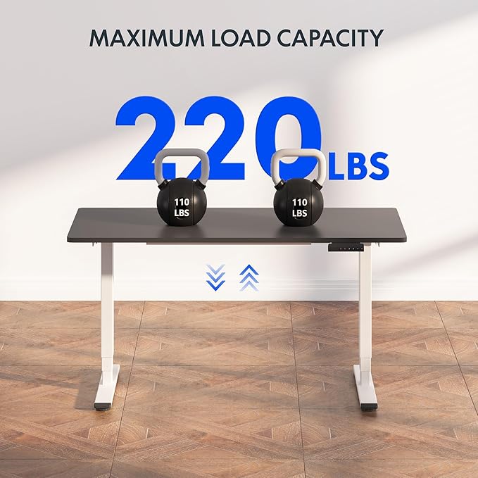 - 【QUIET & SMOOTH DUAL MOTORS】 Effortlessly lift and lower the electric standing desk with whisper-quiet dual motors that produce less than 50 dB of sound. These motors can handle 65% more weight (up to 220 lbs total) than single-motor desks, ensuring minimal noise disruption, even in the quietest room.