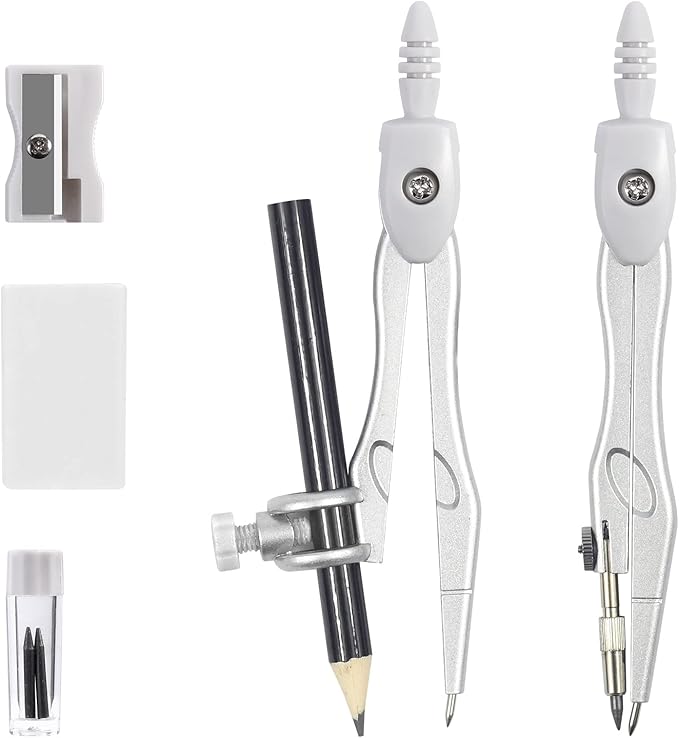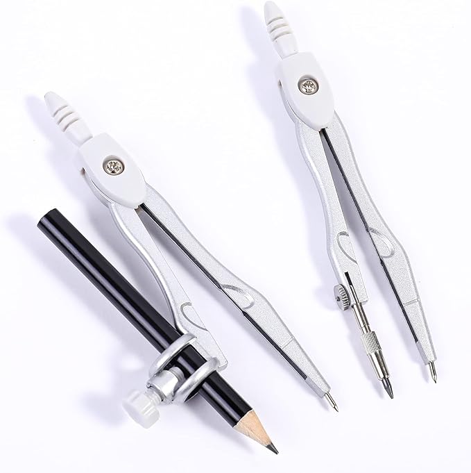 - A Practical Compass Geometry Set:Long-Lasting metal compasses will not bend, Ergonomically designed compass head is comfortable to hold, Universal Holder Compass work with any standard sized pencil or pen