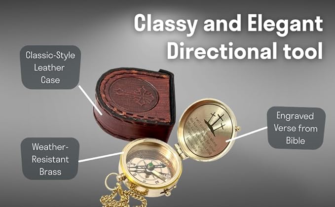 - Perfect for Gifting: Engraved with a motivational religious verse, the brass compass with leather case makes a beautiful and heartfelt gift for sons, daughters, and other family and friends. It is a well-appreciated choice whether as a baptism gift, confirmation gift, graduation gift, Christmas gift, birthday gift, or for any other occasion.
