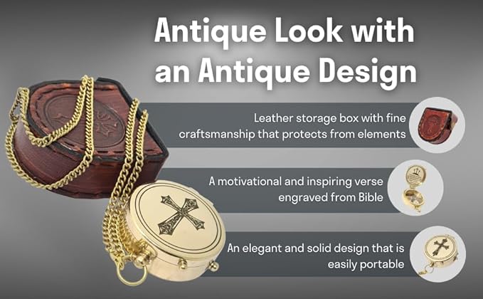 - Premium Quality: This pocket compass is made with the finest quality brass with a burnished brass finish, making it highly durable and suitable for outdoor use. The religious gift comes with a leather storage case that boasts fine craftsmanship to keep your compass safe.