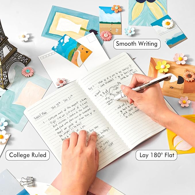 - These travel journals bulk for women have 92 blank lined pages (46 sheets), which would be sufficient for daily usage. The note taking notebooks have a smooth cover, round corners and tight stitching, which are designed to lay 180° flat. Some quick notes can help you remember important dates and find the page you want in a very short time.