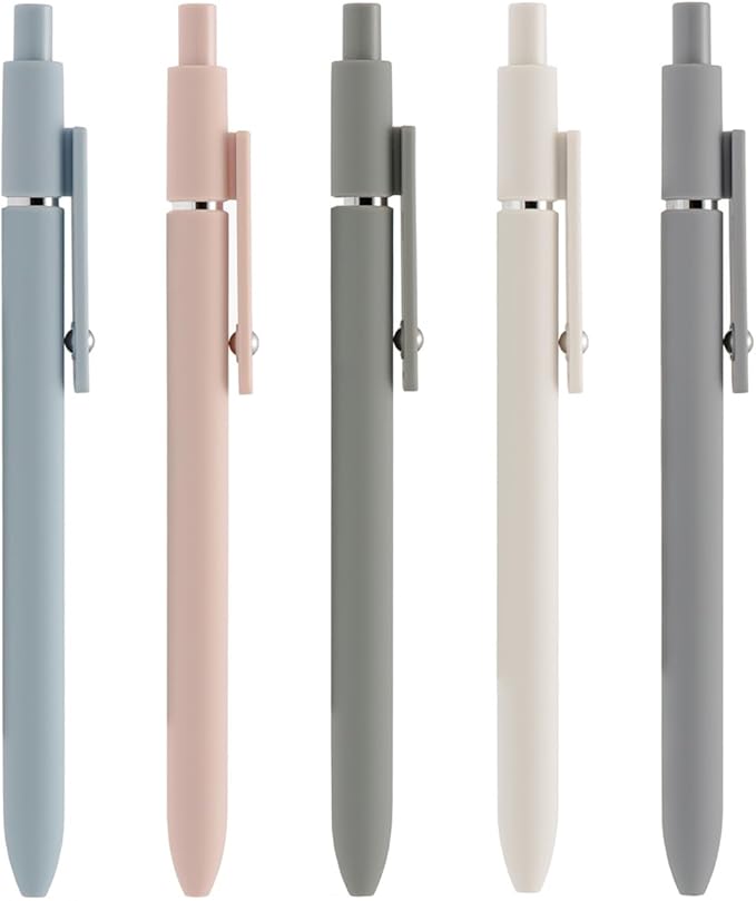 5PCS Retractable Gel Pens Set, Quick Dry Black Ink Fine Point Roller Ball Gel Ink Pen for Smooth Writing (Morandi Color)
