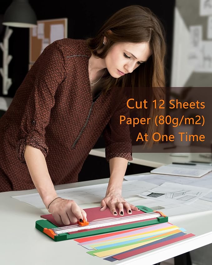 - Efficient to Cut: Dark green paper trimmer is designed to cut A3, A4, A5 Paper, Photos, Cards, Laminated Stuff (within 1.5 mm), and more. Max cut 12 sheets of paper (80 g/m2) each time. Cut a little less prolongs blades' service life