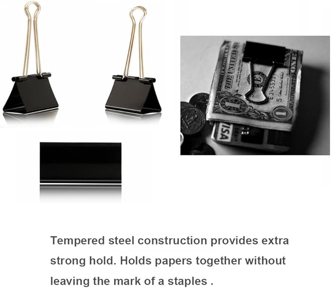 - ADVANTAGE - Spring-tight binder clip keeps files bound together preventing papers from slipping or pulling out, tempered steel construction provides extra strong hold. Holds papers together without leaving the mark of a staple.