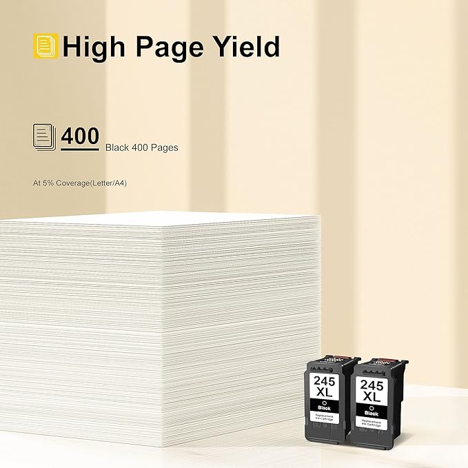 - High Page Yield: Up to 400 pages per 245XL black ink cartridge (at 5% coverage), print more when you need to and extend the time between replacing ink cartridges