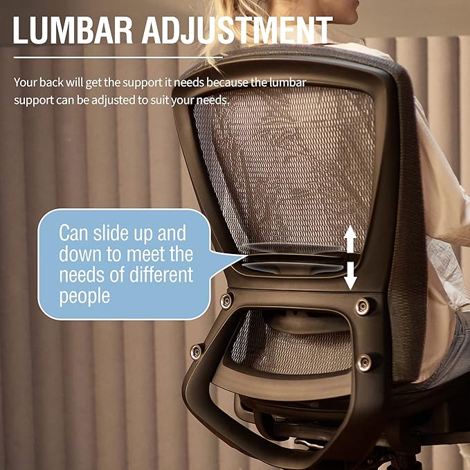 - 【Comfortable Seat】The seat of this task office chair is designed with a bionic curve and mesh material, promoting good blood flow to your legs and providing a comfortable stretch.