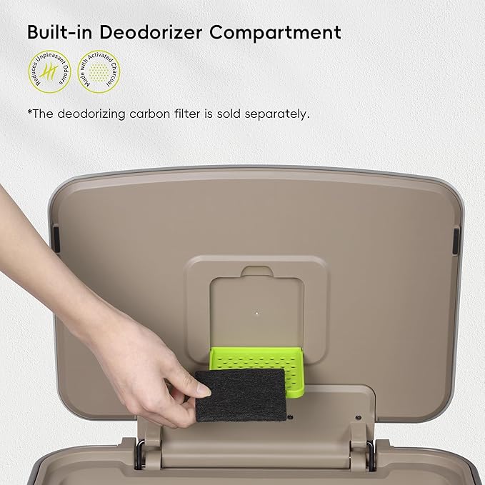 - 25% More Capacity - The no-liner design takes up less room than a standard trash can footprint while offering the same 13.2 Gallon capacity.