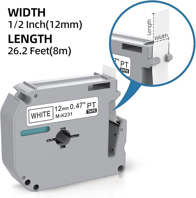 - Compatible with M-k231 brother p touch label tape 12mm 0.47inch work for PT-M95, PT-90, PT-45M, PT-55BM, PT-55S, PT-65, PT-65SB, PT-6SCCP, PT-66SL, PT-650VP, PT70, PT70BBVP, PT70BM, PT70BMH, PT-70HK, PT-70HOL, PT-70HOT, PT-7SP, PT-70 SR, PT-80, PT-80SCCP, PT-85, PT-100, PT-110, etc.