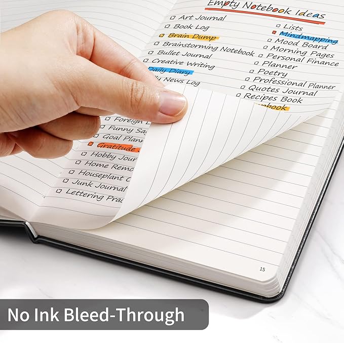 - Multifunctional Cover: The hard cover is made of vegan leather, and designed with a pen loop, an elastic band, two ribbon page markers, an expandable inner pocket.