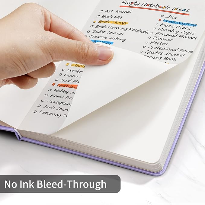 - Multifunctional Cover: The hard cover is made of vegan leather, and designed with a pen loop, an elastic band, two ribbon page markers, an expandable inner pocket.