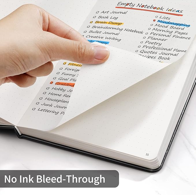 - Multifunctional Cover: The hard cover is made of vegan leather, and designed with a pen loop, an elastic band, two ribbon page markers, an expandable inner pocket.