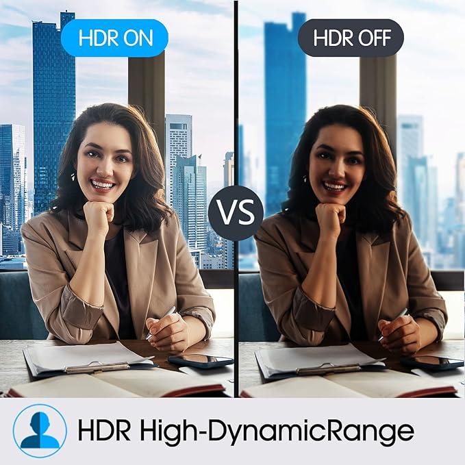 - 【4K and HDR Technology】Look your best with stunning Ultra HD 4K resolution and our HDR mode that ensures optimal balance of highlights and shadows. Enjoy flawless image quality without overexposure caused by nearby windows.
