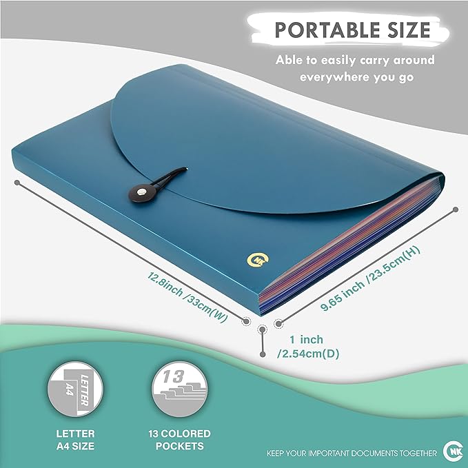 - [High Quality Material] Our 13 Pocket Expanding File Folder is made from quality PP Plastic material, Acid-Free, PVC-Free to ensure durability, water resistant and long lasting cover from every uses.