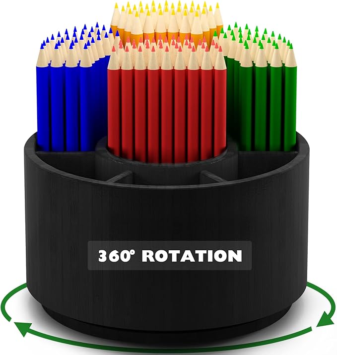 - 【MULTIFUNCTIONAL PURPOSE】Back to School Essentials. The spinning organizer is designed to keep your stuff well organized, 7 sections, 1 big round section in middle will be perfect for your pens, crayons, scissors, paint brushes, scissors, staplers stationery, cutlery and more. The elegant design of our desktop storage organizer makes it perfect to use for classroom, living room, office supplies,cosmetics and kitchen.