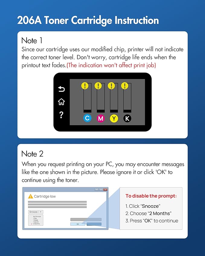 - 4. Excellent Performance: 206a toner cartridges 4 pack Count on high-quality, reliable printing and save time by avoiding common printing problems