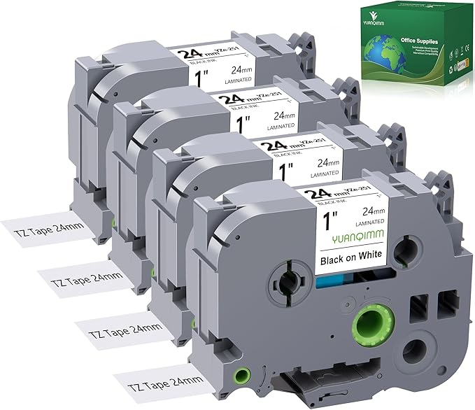 - 4-Pack Compatible with Brother TZe251 TZ251 TZe-251 TZe TZ tape 24mm 1 inch laminated white tape for P-Touch Ptouch