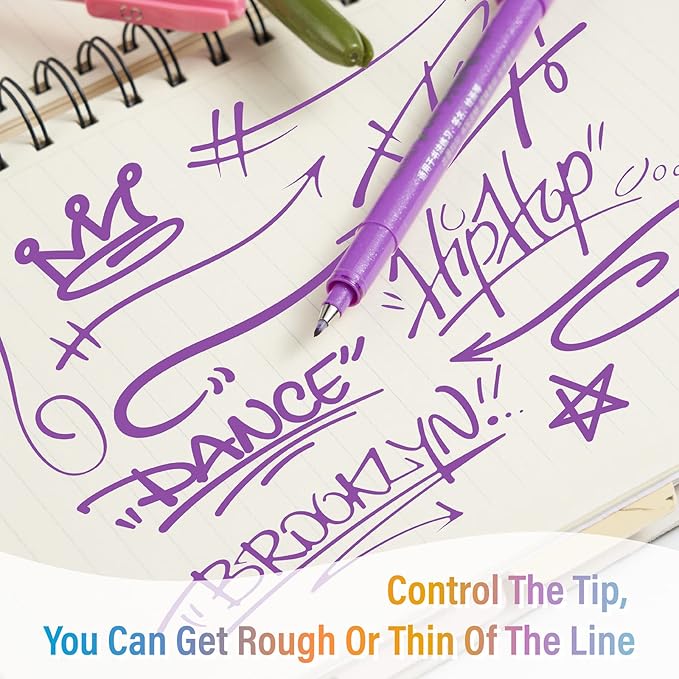 - Flexible Nibs: Our brush pen nibs are made of a unique fiber material that is soft, flexible, and smooth to write with. You can control the thickness of your lines by adjusting the force you put on the sign pen, allowing you to write thick or thin lines with ease.