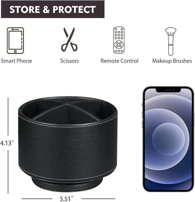 Fanousy 360° Rotating Pen Holder for Desk, Leather Pencil Pen Organizer Remote Control Holder Table Desktop Nightstand Organizer Caddy Storage, Office Desk Organizers And Accessories 5.5x5.5x4.0 Inch