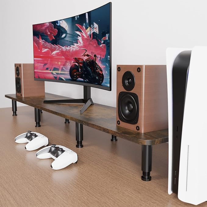- 【Extra-Long Design for Dual Monitors & More】 This 43.7-inch wide monitor stand riser is designed to comfortably hold two monitors, laptops, or even a TV, providing ample space for your home office or workspace. Its extra-long design ensures your desk stays organized and clutter-free.