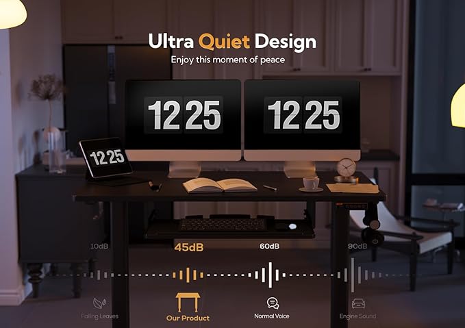 - Ultra-Quiet and Powerful Motor: Claiks custom-designed motors provide robust power for the height-adjustable standing desks. With noise levels as low as 45 decibels, you can enjoy smooth and quiet adjustments, enhancing your workspace without any disruptions.